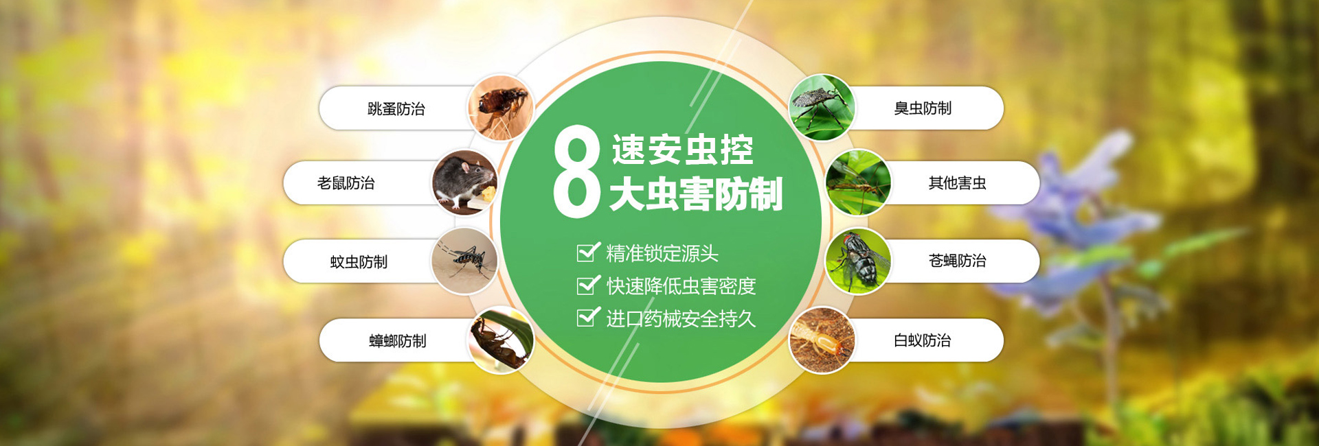 武漢速安有害生物防治有限公司是一家經(jīng)過(guò)合法注冊(cè),證件齊全,專(zhuān)業(yè)從事滅蟑螂滅鼠、有害生物防制 PC O(有害生物控制)為主的綜合性環(huán)保技術(shù)公司。是國(guó)家衛(wèi)生部門(mén)批準(zhǔn)的有害生物防治機(jī)構(gòu),湖北省專(zhuān)業(yè)殺蟲(chóng)公司之一。公司提供各種環(huán)境下滅蟑螂、滅鼠等殺蟲(chóng)服務(wù)。承接武漢范圍內(nèi)及周邊城市的大型社區(qū)、山莊、度假村、高爾夫球場(chǎng)、旅游景點(diǎn)、賓館、飯店、公寓、寫(xiě)字樓、醫(yī)院、機(jī)關(guān)、餐飲業(yè)、食品加工業(yè)、倉(cāng)儲(chǔ)等各企事業(yè)單位的消殺工程;銷(xiāo)售各種蟑螂藥鼠藥等衛(wèi)生殺蟲(chóng)藥品,為客戶(hù)提供更全面的服務(wù)。